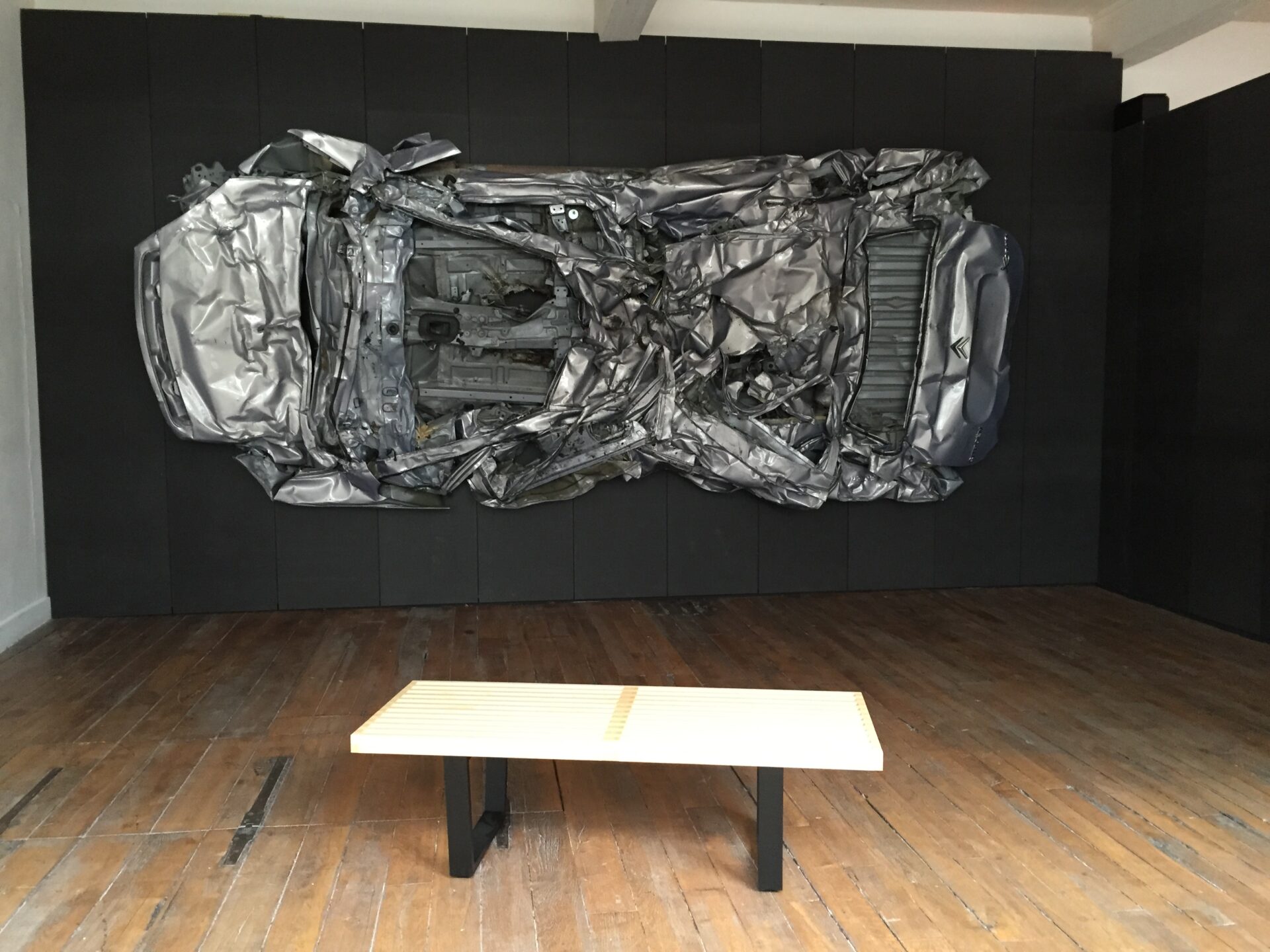 2015. Voiture Xsara Picasso compressée. Environ 180 x 450 x 20 cm.